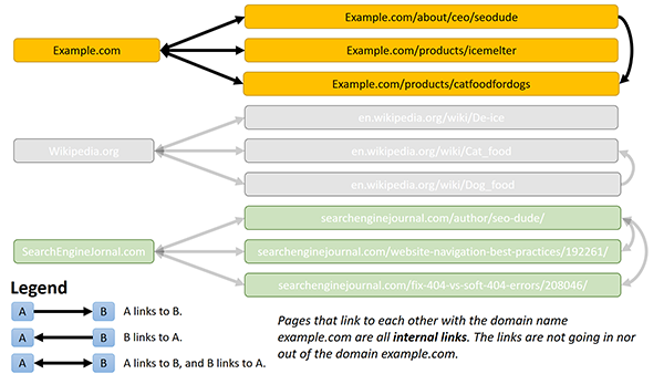 2、內(nèi)部鏈接是您自己網(wǎng)站內(nèi)頁(yè)面之間的鏈接。搜索引擎通過(guò)查看域名來(lái)確定這一點(diǎn),如果頁(yè)面上的鏈接鏈接到同一個(gè)域內(nèi)的其他頁(yè)面,則將其視為內(nèi)部鏈接。如果出于某種原因,您的網(wǎng)站建立了多個(gè)域名,搜索引擎會(huì)將其視為外部鏈接。