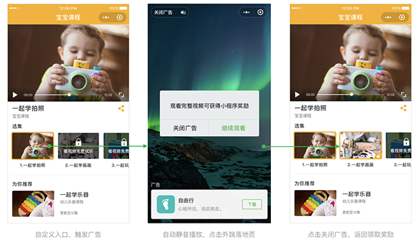 1、小程序激勵(lì)式視頻廣告是指用戶在小程序內(nèi)主動(dòng)觸發(fā)的一種廣告模式,用戶完成廣告視頻觀看后可獲得流量主設(shè)定的相應(yīng)獎(jiǎng)勵(lì)。