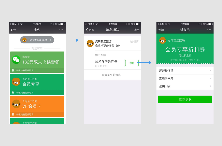 為了方便商戶進(jìn)行會員管理,公眾平臺豐富了微信會員卡的展示能力、推出微信會員卡一鍵激活功能、卡券消息運(yùn)營位功能和快速買單功能。