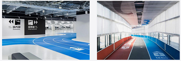 眾所周知,日本的公交系統(tǒng)很完善,從踏進(jìn)機(jī)場(chǎng)的哪一個(gè),便能感受到它清晰的指引性。對(duì)于很多的經(jīng)常出差,飛來飛去的乘客而言,趕飛機(jī),找登機(jī)口應(yīng)該是經(jīng)常發(fā)生的一幕,日本的設(shè)計(jì)師讓飛奔趕搭飛機(jī)的旅客成為了一個(gè)有趣的現(xiàn)象—在地面上鋪設(shè)藍(lán)、紅兩種顏色的PU田徑跑道,讓旅客在上面奔跑。藍(lán)色指引旅客順利抵達(dá)安檢區(qū),紅色指引旅客抵達(dá)機(jī)場(chǎng)交通出口,同時(shí),跑道上標(biāo)識(shí)有目的地、方向及行走距離,采用最直接的圖文方式給用戶指引。