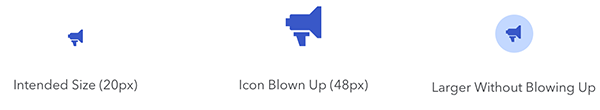 不過,若這些小圖標(biāo)是你唯一能夠搞得到的素材的話,那么不妨試著將它置于另外一個帶有顏色的圖形當(dāng)中:這樣的設(shè)計(jì)不僅能夠讓圖標(biāo)達(dá)到預(yù)期的視覺體積,而且看起來要比單純放大,看起來細(xì)節(jié)會更多一些。