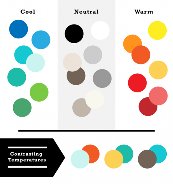 配色同樣最容易被感知到的設(shè)計元素,色彩的色相、明暗、飽和度上的差異,都可以制造足夠的對比度。同一種色相下,不同深淺的顏色之間的對比是非常明顯的,而我們最常見的就是在黑色背景上的白色文本和在白色背景上的黑色文本,這種對比度確保了內(nèi)容擁有基本的可讀性。當然,在實際的色彩搭配當中,對比度足夠明顯的配色方案會更加復雜,通常而言,下面的幾種搭配方式能夠給你對比明顯效果不錯的配色: