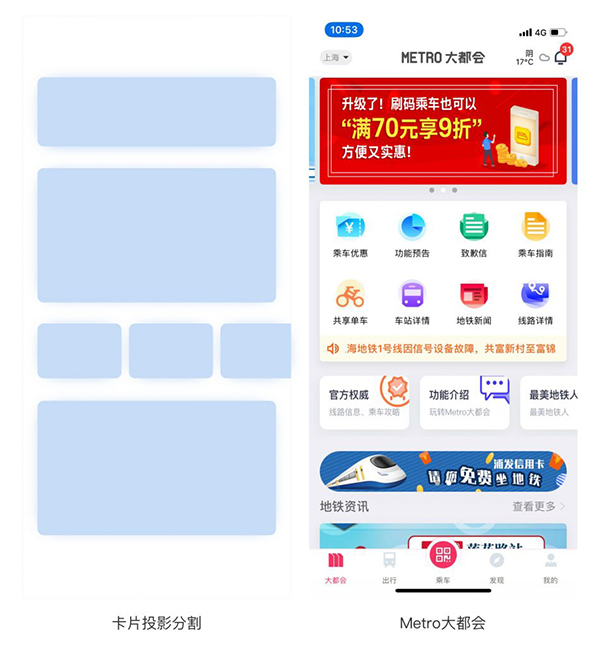 卡片投影一直以小巧整齊的內(nèi)容容器形式而存在,每一個卡片都承載不同的信息,時用戶了解更多細(xì)節(jié)信息的入口,如圖: