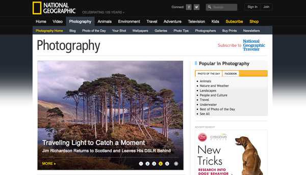 如果一張漂亮的圖片對你的項目有幫助,別僅限于從中汲取靈感,直接使用它。大膽設(shè)計,聚焦于這張漂亮圖片。另一方面,如果你沒有合適的圖片,搜羅全世界的照片來尋找靈感。當你感到艱難、設(shè)計卡住時,National Geographic、Jill Greenberg和Levon Biss,就是尋求幫助的絕佳地方(而且這些網(wǎng)站圍繞圖片的設(shè)計都做得不錯)一張焦點圖一張圖片。