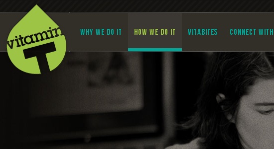 2、美妙的暗色首頁完美運用了背景與前景的對比。其左上角無縫貼合的漢堡按鈕與logo和文字完美回應,以美妙的方式呈現(xiàn)出了一副以圖片為核心的漂亮導航欄。
