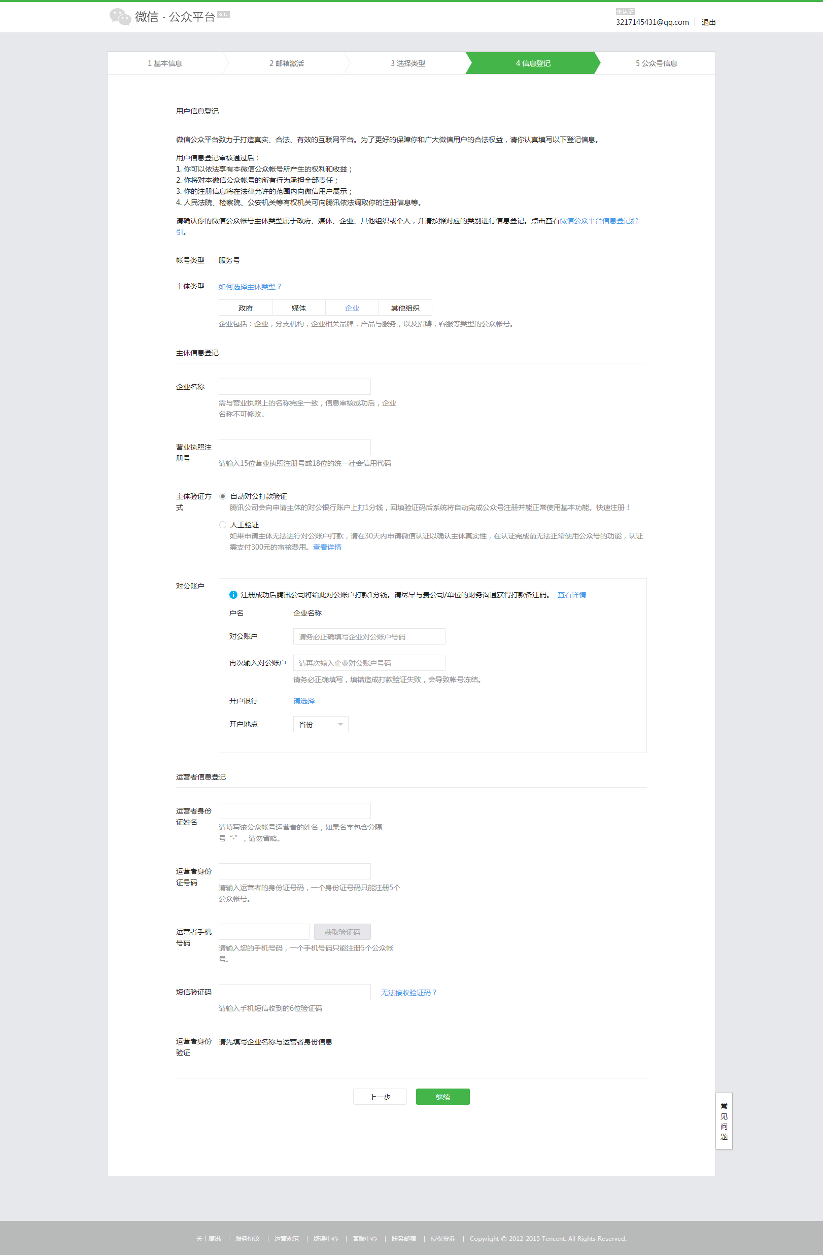 在注冊之前有些資料是必備的,企業(yè)的營業(yè)執(zhí)照注冊號,企業(yè)的名稱,企業(yè)運營地址,對公賬戶,運營者手機(jī)好,運營者姓名。