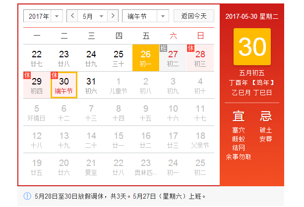 天津網(wǎng)站建設(shè)-文率科技根據(jù)國務(wù)院關(guān)于2017年部分節(jié)假日安排,將放假三天:2017年5月28日至5月30日放假公休,5月27日(星期六)照常上班。