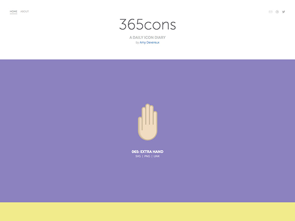 365cons不知道作為設計師的你是否了解對其有過了解,它是Amy Devereux所制作的每日更新的“圖標日記”,這些圖標被設計成不同的樣式,對于設計師尋找靈感來說是相當不錯的選擇,如果現(xiàn)在的你也在迷茫,不知所措的話,不妨多瀏覽些這樣的網(wǎng)站,用其作為靈感來源還是相當不錯的哦!