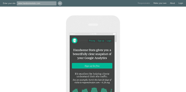 Responsinator提供了仿真的Web界面來測試你的響應式設計,提供了iPhone,Android,iPad,Kindle及其多種設備上的預覽效果,你可以方便地看到需要支持的設備的響應式設計效果圖。