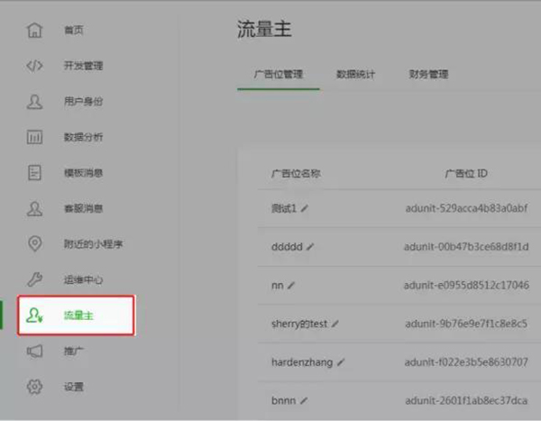 開通流程:進(jìn)入微信公眾平臺小程序后臺,點(diǎn)擊左側(cè)面板“流量主”,滿足開通門檻的小程序開發(fā)者直接點(diǎn)擊“開通”即可創(chuàng)建相應(yīng)的廣告位。