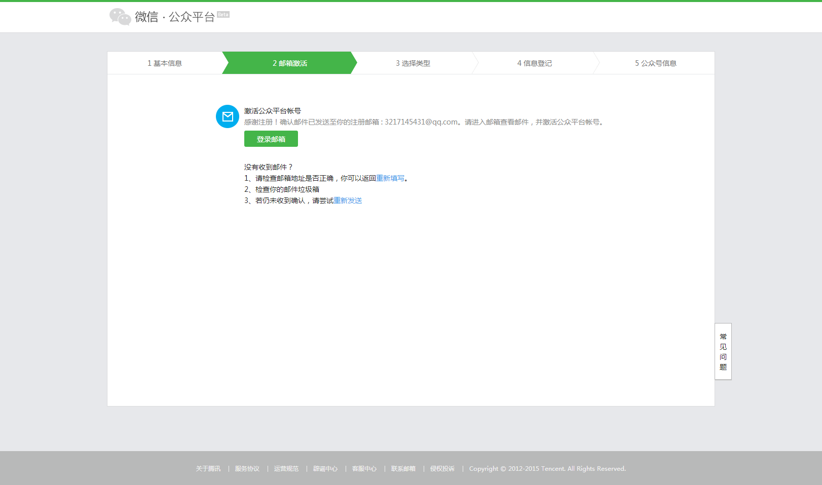 2、注冊過QQ賬號以后,登錄到https://mp.weixin.qq.com/的頁面,進(jìn)行企業(yè)微信服務(wù)號的注冊。如圖: