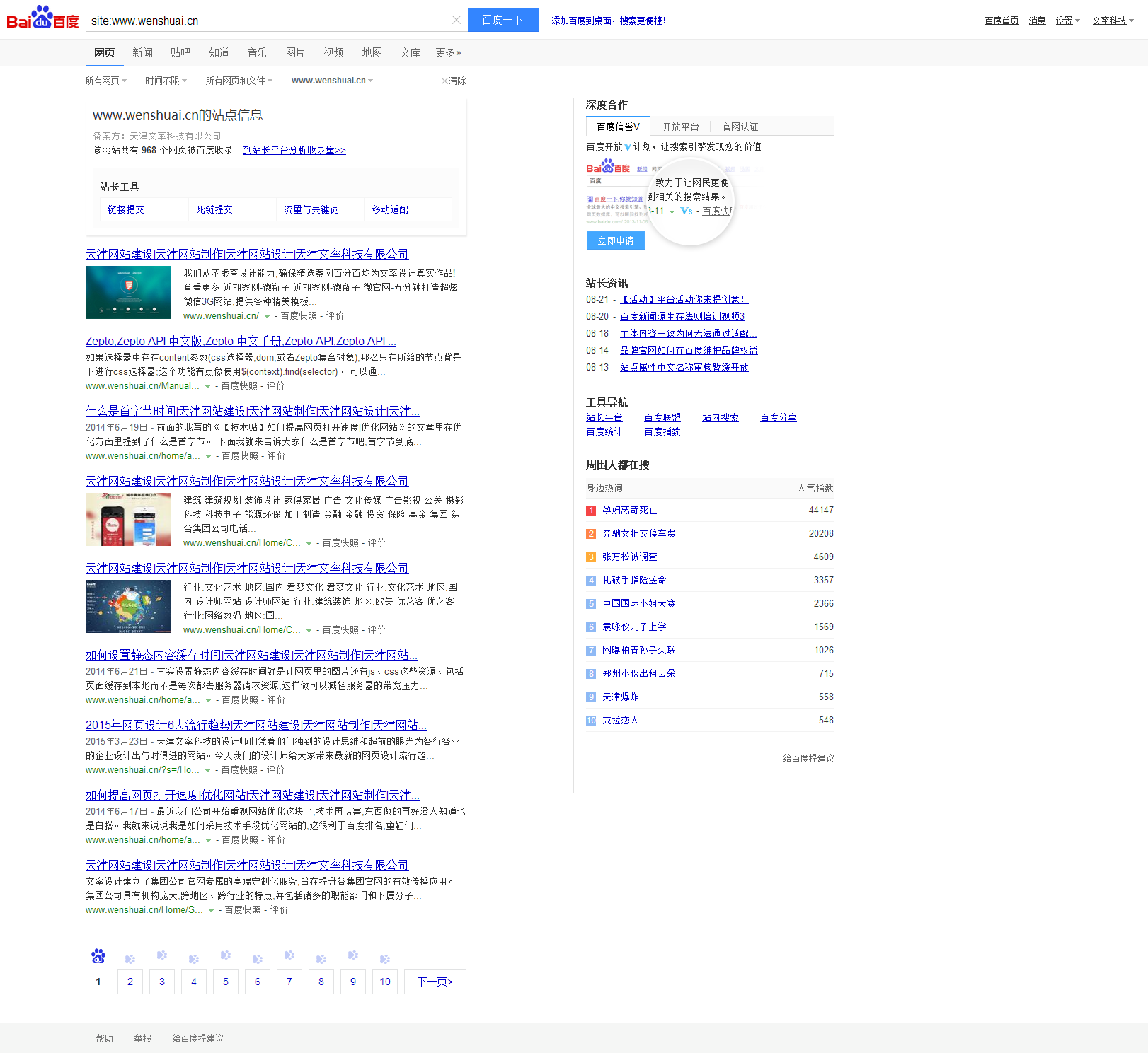 觀察對方網(wǎng)站的收錄情況:我們可以打開百度的頁面輸入site查看對方網(wǎng)站的收錄情況,若是對方網(wǎng)站的收錄與自己網(wǎng)站的收錄之間的差距不是太多,或者是對方的收錄比自己多,那么我們都是可以與之交換友情鏈接。如:查看天津網(wǎng)站建設(shè)-文率科技的收錄情況,在百度的頁面我們應(yīng)輸入site:www.tutuad.com,如圖: