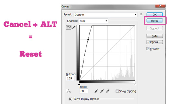 ps的小白們一定會覺得曲線和色階調整不好把控,部分時候有些色階結合或其他的調整不能很好的融合,而這到時設計師不得不重新開始,通俗的對應方法是:點擊取消按鈕,或者重新打開調整面板。不過這里文率小編想給大家分享一個節(jié)省時間的小竅門,當你想要重新做一個曲線,不要直接點擊取消按鈕,按住ALT鍵,“取消”將會瞬間變身成一個叫“復位”的東西,點擊復位,曲線就會回到初始狀態(tài)啦!