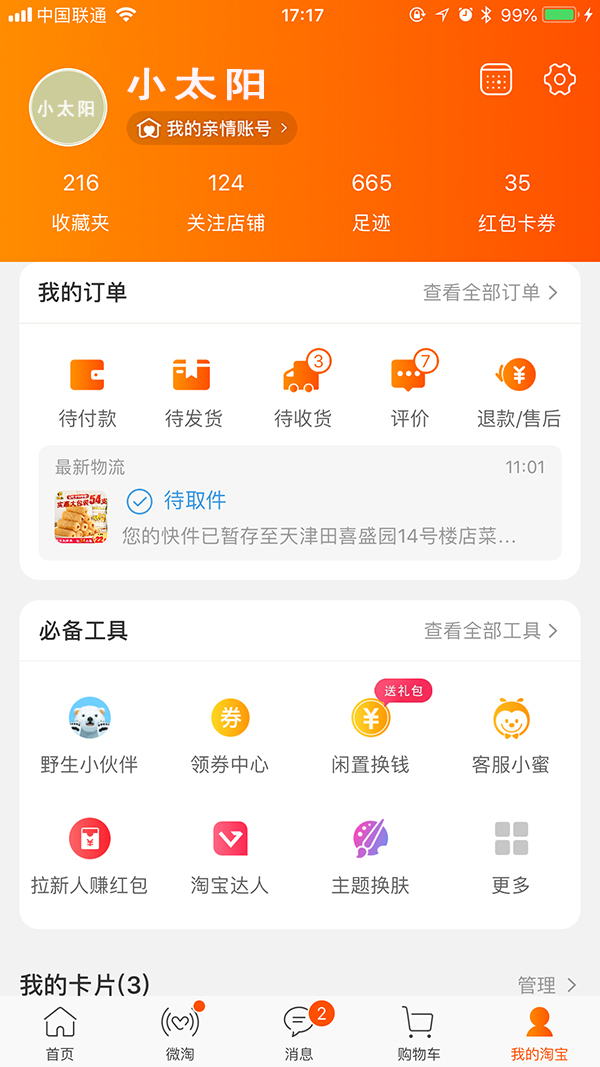通過工具內容顯性化設計,可實現(xiàn)用戶所見即所得,幫助用戶快速明確的理解到工具所提供的核心功能和服務,有效的減少用戶與工具所提供的核心服務之間的交互步驟和流程,讓用戶在當前工具的內容區(qū)完成與工具的核心交互。如:淘寶「我的淘寶」頁面就采用了大量內容顯性化的設計,用戶在當前頁面就能快速掌握到核心的信息。