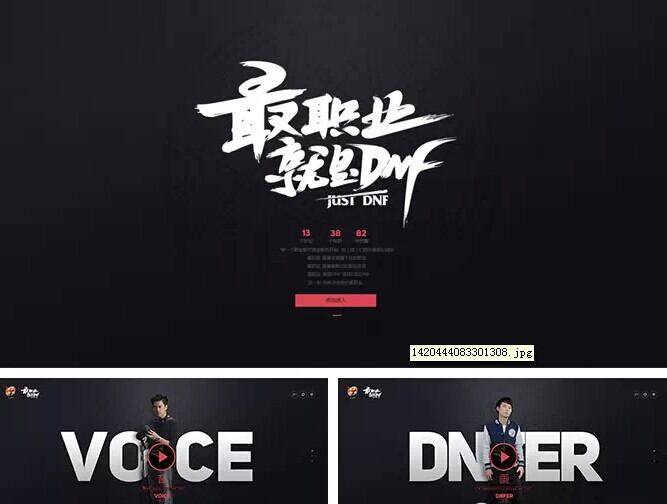 例如:“最職業(yè)DNF”主題站,為打造最具豐富并個性差異職業(yè)體系,采用精致的大標題設計,結(jié)合簡單的背景,重點突出又不失美觀。