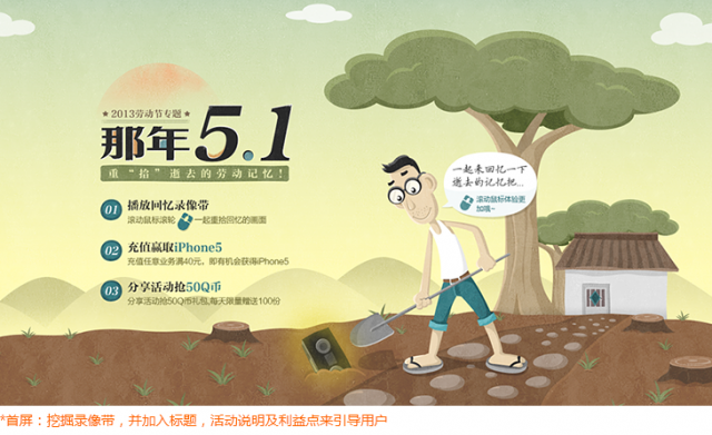 為了能最大化的促發(fā)用戶(hù)的潛意識(shí),我們?cè)谡麄€(gè)活動(dòng)中融入挖掘回憶錄像帶這個(gè)合乎邏輯的故事線(xiàn)讓用戶(hù)更易產(chǎn)生感情共鳴,當(dāng)然,最主要的還是在這其中融入我們的業(yè)務(wù),使這些原本極具“商業(yè)化”的業(yè)務(wù)內(nèi)容軟化為了一個(gè)個(gè)擊中用戶(hù)記憶的“情結(jié)”,這樣既不會(huì)顯得突兀,也能契合用戶(hù)的心理活動(dòng)。