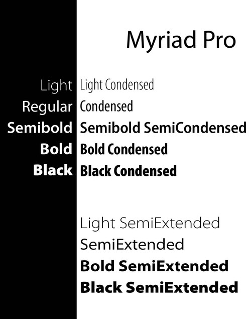 五、比例:比例變化會使家族里出現(xiàn)“瘦”和“胖”的變異,這是對字形橫向或縱向比例的收縮變化,在西文的傳統(tǒng)系統(tǒng)命名中通常會用Condensed(橫向壓縮)和Extended(橫向拉伸)來區(qū)分長和寬兩個類別,這兩種變化可以比較好的處理當(dāng)空間收到局限時字體的應(yīng)用,而不會讓字體出現(xiàn)因?yàn)檫M(jìn)行直接的縮放所而導(dǎo)致的風(fēng)格變形。