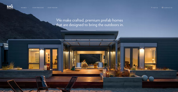 Blu Homes 的首頁設(shè)計的幾乎可以說是非常完美的,在文案設(shè)計和視覺設(shè)計之間找到了平衡點,兼顧了視覺和閱讀體驗。另外,自然的動效和精心選取的圖片為整個網(wǎng)站營造出溫馨的氛圍,給人一種非常舒適的感覺。