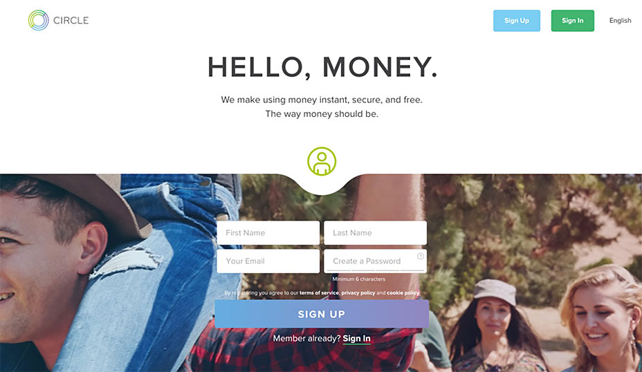 Circle屬于服務(wù)行業(yè)中一種比較新穎的服務(wù),可輔助你使用比特幣買東西,該網(wǎng)站公司登陸頁面有幾個地方設(shè)計的非常的出色,如:在多個位置放置注冊表單,而不是單獨跳出頁面。此外,其還采用了幾個其他設(shè)計訣竅,鼠標滾動時,其背景圖片上采用了比較聰明的視差效果,但大型的圖片并不會原地不動,而是會縮小到遠景。