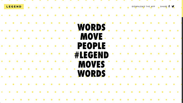 Legend可以幫你將文字轉(zhuǎn)化為GIF圖或者視頻格式,網(wǎng)頁中也加入了大量的動效來展示這款應(yīng)用的實際效果。這種充滿活力的展示方式,同樣是非常值得設(shè)計師學習和借鑒。