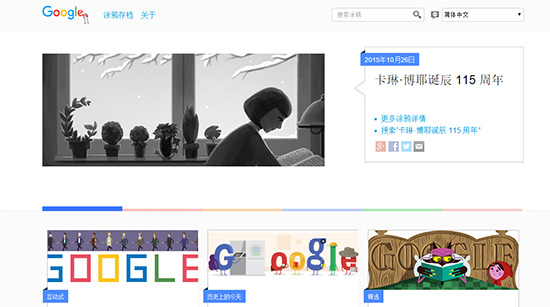發(fā)布著Google在一些紀念日所設計的特殊logo的網(wǎng)站??梢钥吹?/span>Google的“歷代節(jié)日logo”。Google公司內(nèi)部叫它“Doodles”,英語指的是“亂涂亂畫”。很厲害喲。