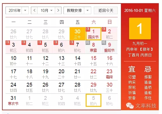 根據(jù)《國(guó)務(wù)院關(guān)于2016放假安排表的通知》,天津網(wǎng)站建設(shè)-文率科技2016十一放假時(shí)間安排:放假7天,即10月1日至10月7日。10月8號(hào)(星期六),10月9號(hào)(星期天)正常上班。