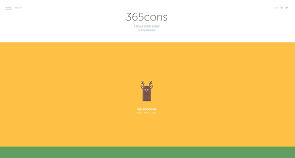 365cons 是Amy Devereux 所制作的每日更新的“圖標日記”。該網(wǎng)站集聚很多的與眾不同的圖標設計,這些圖標被設計成不同的樣式,不同的風格,從這些設計作品中不難看出作者的靈感來源是相當不錯的。