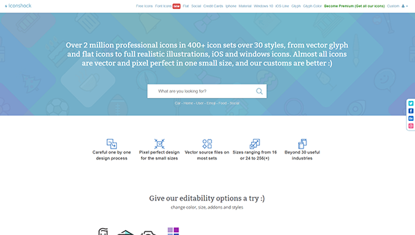除此之外,Iconshock還允許使用者直接在線上變化不同的配色風(fēng)格。通常情況下,尋找圖標(biāo)時(shí)往往會(huì)受限于它的設(shè)計(jì)風(fēng)格和顏色,但I(xiàn)conshock可以讓使用者自定義顏色、大小或加入配件,使得圖標(biāo)看起來(lái)效果一致,也更能與你的網(wǎng)頁(yè)相襯。