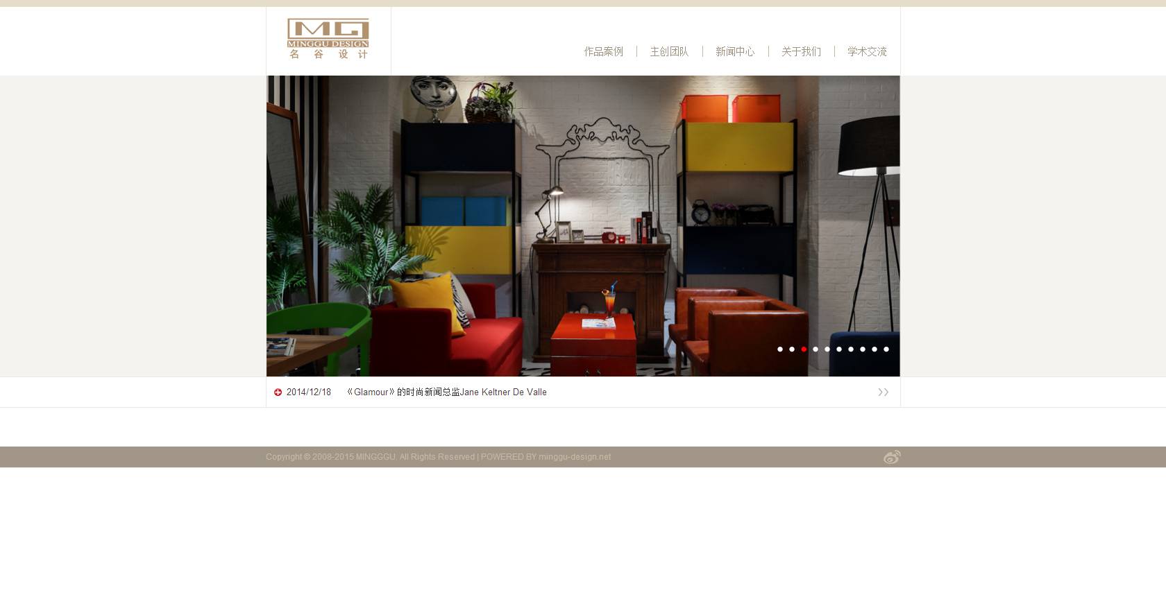 名谷設(shè)計團隊以積極進取的精神和高度一致的核心凝聚力廣受業(yè)內(nèi)好評,其作品屢獲大獎并被《建筑與文化》、《現(xiàn)代裝飾》、《室內(nèi)設(shè)計與裝修id+c》、《裝潢世界》,《軟裝飾界》《2013中國室內(nèi)設(shè)計年鑒》。江蘇城市頻道《城市空間》、《德國室內(nèi)設(shè)計網(wǎng)》、《美國室內(nèi)設(shè)計中文網(wǎng)》等專注媒體雜志報道。